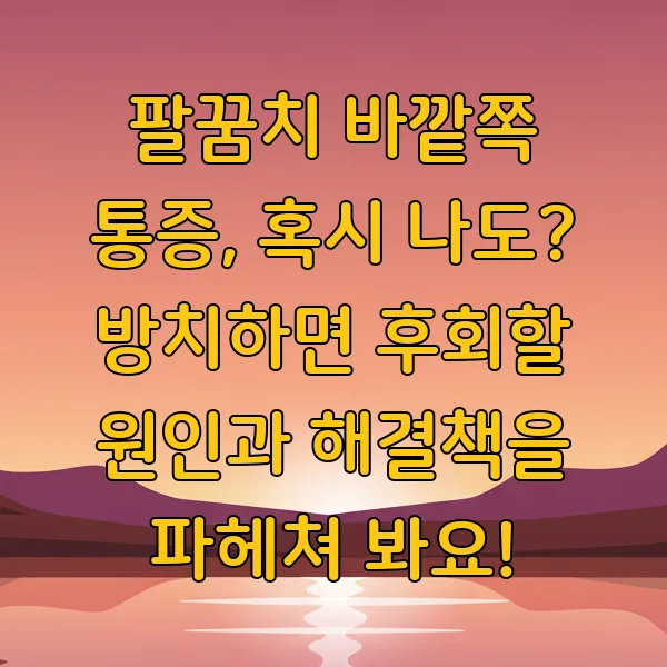 팔꿈치 바깥쪽 통증, 이거 은근히 신경 쓰이는 분들 많으시죠? 저도 예전에 무심코 넘어갔다가 꽤 고생했던 기억이 있어서 오늘은 이 팔꿈치 바깥쪽 통증 에 대해 좀 제대로 알아보려고 해요. 컴퓨터를 오래 하거나, 운동을 격하게 하거나, 심지어 설거지 같은 일상적인 동작에서도 불쑥 찾아올 수 있는 이 통증, 그냥 넘기기엔 찜찜하잖아요. 그래서 오늘은 여러분과 함께 팔꿈치 바깥쪽 통증 의 흔한 원인들을 짚어보고, 혹시 나한테 해당되는 건 없는지 체크해보는 시간을 가져보려고 합니다.