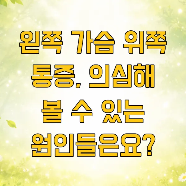 가끔 왼쪽 가슴 위쪽이 뻐근하거나 콕콕 쑤시는 느낌을 받을 때가 있으시죠? 처음에는 '좀 결렸나 보다' 하고 넘어가기 쉬운데요. 하지만 이 통증이 생각보다 자주 나타나거나 심상치 않게 느껴진다면 , 꼭 한번 주의 깊게 살펴보시는 게 좋답니다.